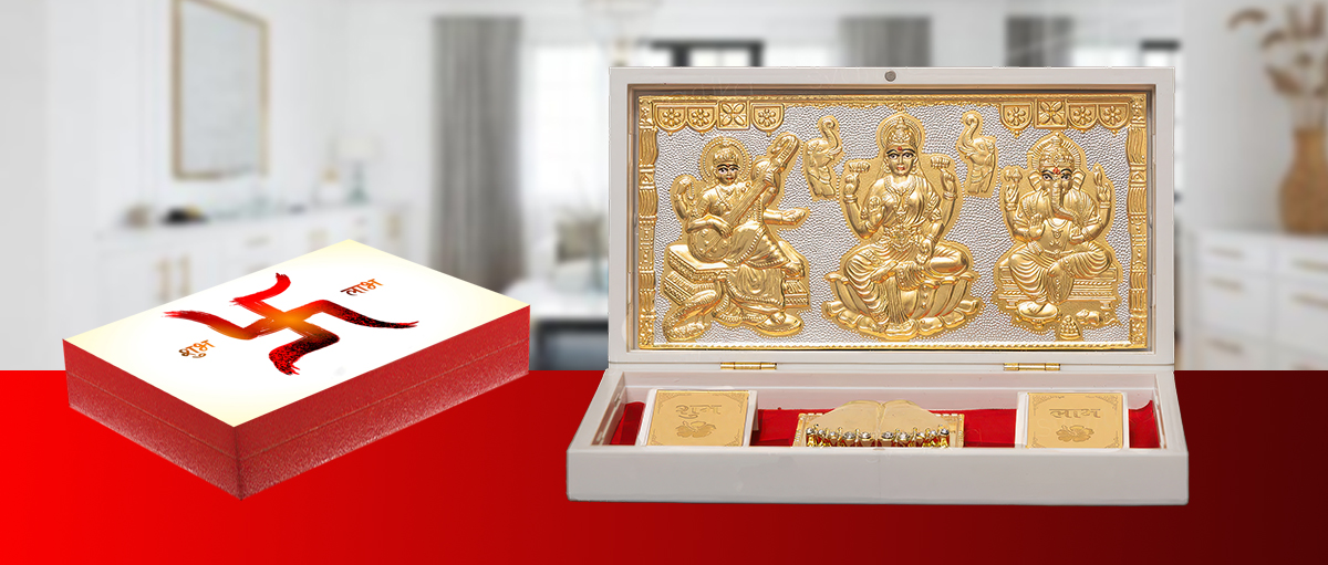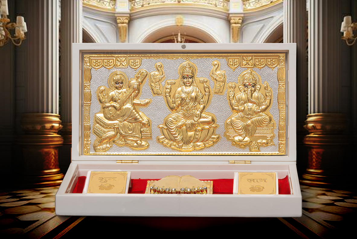 सोने की परत चढ़ी सरस्वती, लक्ष्मी और गणपति की दिव्य बॉक्स मूर्तियाँ आपको एक समृद्ध और शाही अनुभव प्रदान करती हैं। यह पवित्र बॉक्स दिव्य आनंद, मानसिक शांति, आध्यात्मिक संतुष्टि, सफलता और ऐश्वर्य से भरा जीवन देने में सहायक होता है।