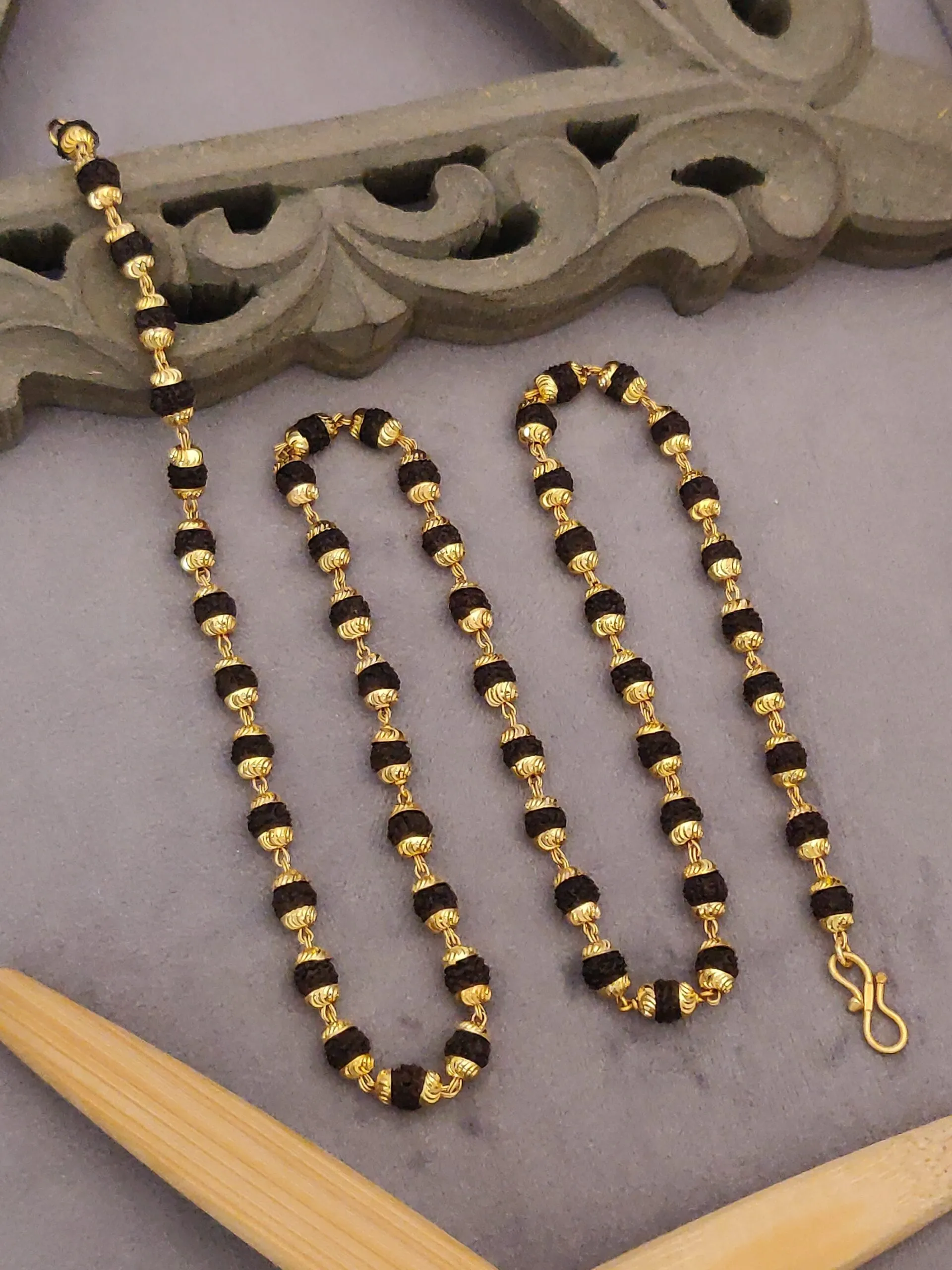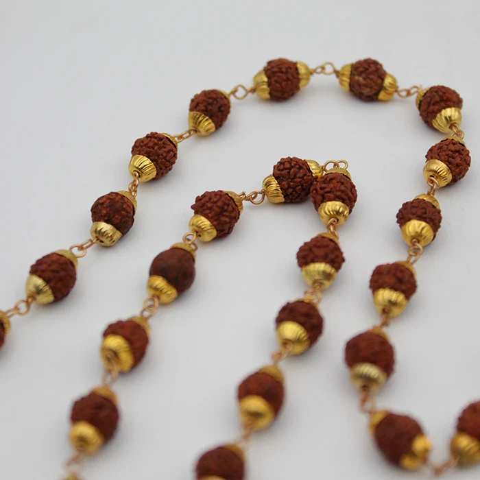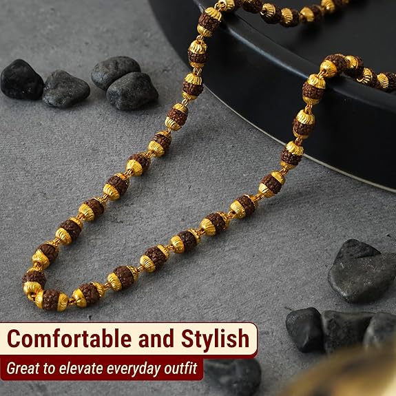 Embrace the timeless elegance of spirituality with the Gold-Plated Rudraksha Mala.