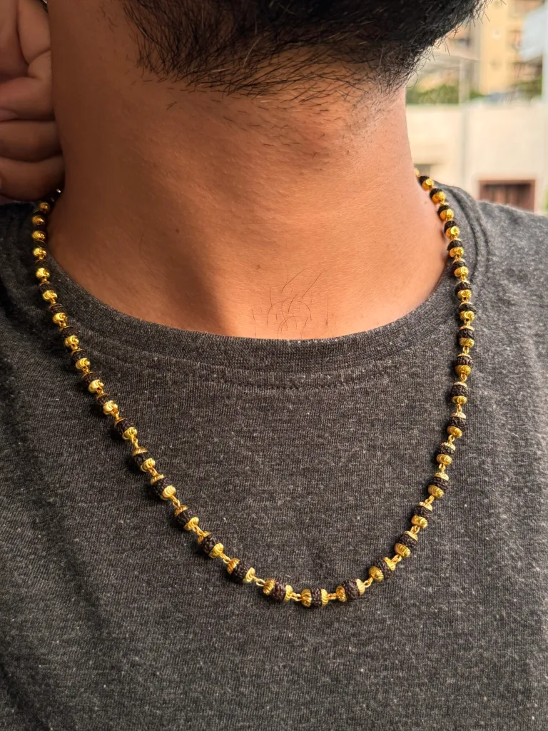 This beautifully crafted mala combines the sacred essence of natural Rudraksha beads with the luxurious touch of gold plating, offering both spiritual benefits and a stylish statement.