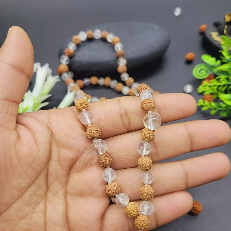 Benefits of wearing a Natural Rudraksha Sphatik Pearl Mala: